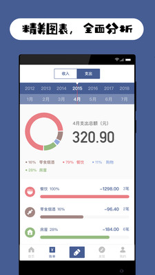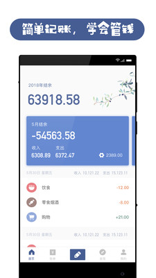 1、简洁的高颜值界面,带来记账好心情;
