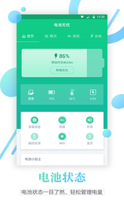 这是一款好用的电池寿命监测应用,可轻松查看你的电池状态,轻松管理你的电量。智能的清理后台无用应用,达到耗电优化的效果。多种省电模式随心切换,轻松节省电量,延长续航时间。有需要的欢迎下载使用。