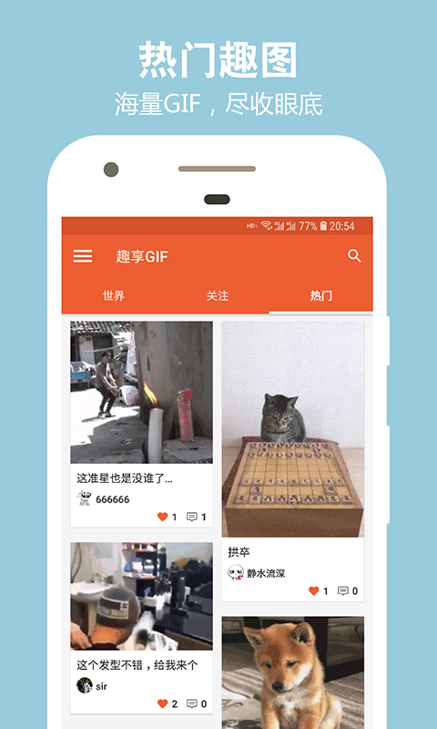 这是一款有趣的gif分享交流社区,在这里有无数的网友分享各类有趣动图。海量的热门趣图尽收眼底。你也可以发挥你的奇思妙想发布你的动图哦。快来下载使用寻找的有趣的图片和有趣的小伙伴吧。