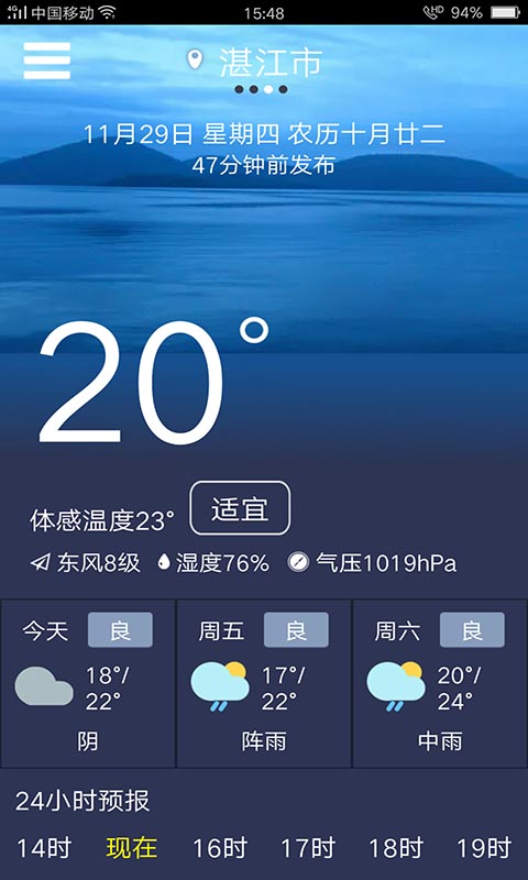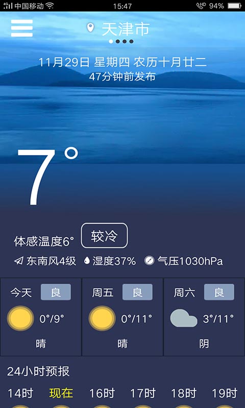 1、24小时的逐时天气预报轻松掌握天气变化;