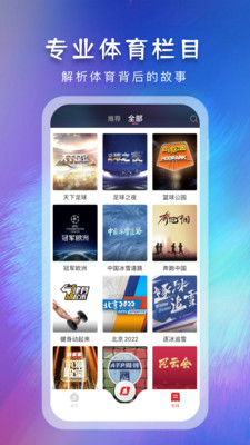 央视体育app是一款专业体育频道,这里让你看官方正版的体育内容,采用碎片化的精彩节目点播方式,让你随时回味央视体育原创精彩,即使是回看重播也是可以的,支持为你做出不同的体育分类,功能十分强大。