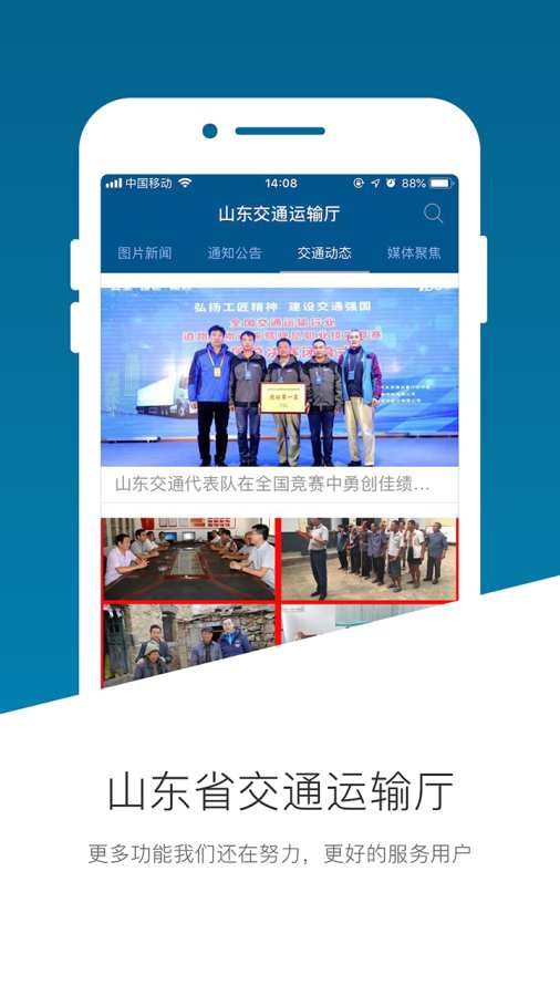 这是一款好用的交通信息应用,专为山东用户而打造,用户可轻松通过该应用,获取到最新的交通新闻资讯,通知公告,交通动态等。阅读到交通运输行业的相关规范文件等。有需要的用户就快来下载使用吧。