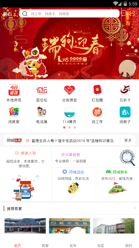 这是一款好用的本地生活服务应用,为用户提供多种便捷生活服务如求职招聘、同城交友、吃喝玩乐等,用户能轻松的享受到高品质的生活体验,觉得还不错的就来下载使用吧。