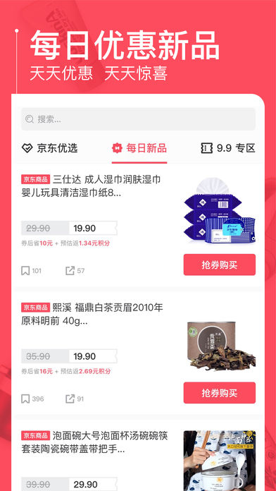 京淘app是一款好用的购物应用,精选海量的京东淘宝优质物品,每日为您更新。每天都有不同的优惠惊喜哦。致力于为每位用户都带来愉悦的购物体验。觉得还不错的就快来下载使用吧。