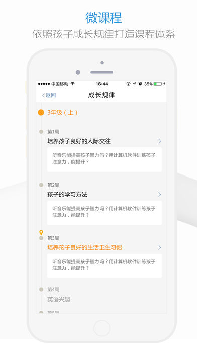 成长帮app是一款好用的教育应用,专为3-18岁孩子的家长解决家庭教育难题而打造。精品的课程为您全面解读养育的困惑,助你更好的进行教育,更好的陪伴孩子的成长哦,欢迎来下载使用。