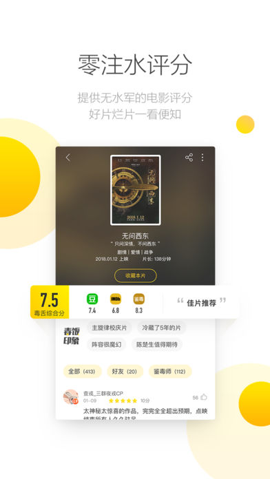 毒舌影视app是一款好用的观影社交应用,在这里你可以看到最新最全面的电影资讯。最全面的影评,众多的影迷朋友汇聚于此,一同评测电影哦。轻松发现与你有着相同爱好的影迷小伙伴哦,快来下载使用吧。