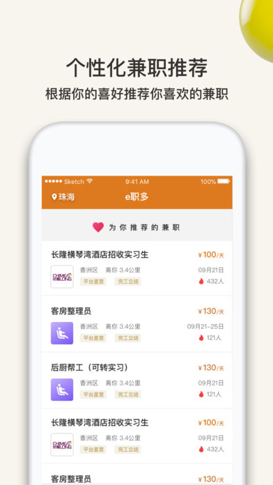 e职多兼职app是一款实用的兼职应用,专注于大学生的安全兼职。提供了众多的优质兼职岗位供您选择哦。根据你的需求进行智能的匹配,为您个性化推荐可能喜欢的兼职,增添兼职成功率,快来下载尝试哦。