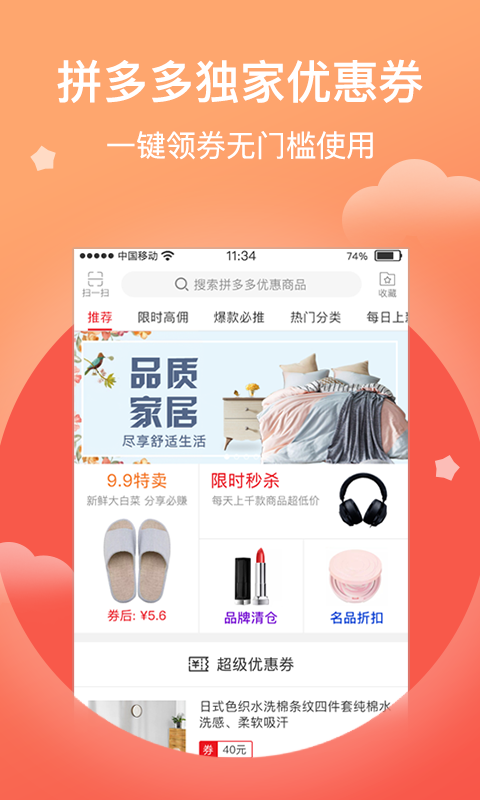 2、拼多多独家优惠券一键领取无门槛使用;