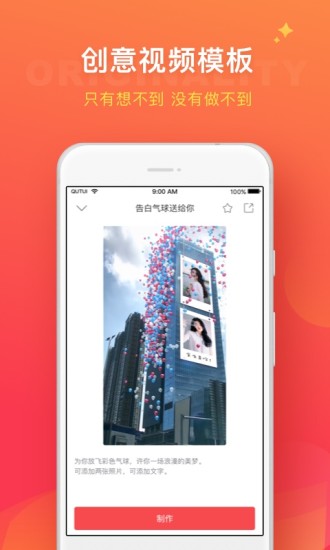 这是一款非常实用的视频营销工具,内有海量视频模板,助你轻松制作出高大上的创意小视频~丰富模板任你使用。让你营销推广更泛娱乐化,轻轻松松实现达到宣传效果,开启视频营销新方式。等你来体验哦。