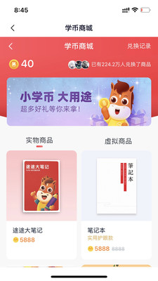 4、在学币商城中,大家可以通过金币来兑换很多的实物或是虚拟学习商品内容。