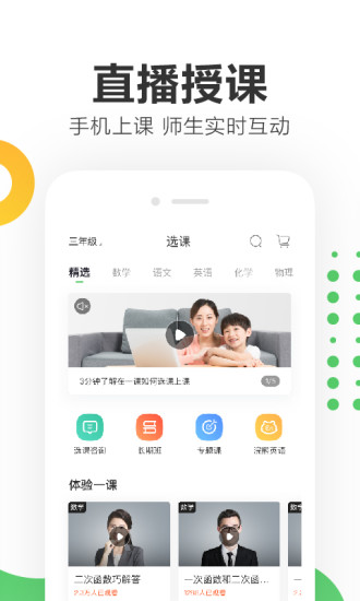 作业帮一课app是一款实用的在线教学平台应用。全科覆盖小初高三个学段的科目内容。众多名师打造的在线优质直播教育课程。为您直播答疑,互动教学,收获更好的学习效果哦,欢迎下载使用吧。