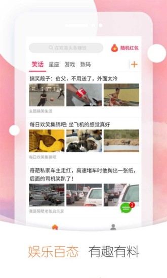 欢喜头条app是一款好用的新闻头条应用,为用户汇聚了多样的热点资讯,不间断的更新推送。使得用户轻松与世界紧密联系,时刻知晓新鲜事儿。洞悉社会的变化发展哦。快来下载使用吧。