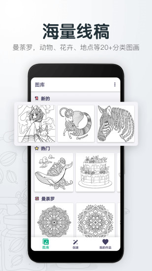 指尖绘图app是一款好用的绘画填色应用。可有效的帮助你疏解压力。汇聚了海量的线稿图,多样的调色版图,你可按照你的想法轻松进行填色的创作。有兴趣的朋友就快来下载使用吧。