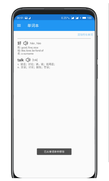 4、支持将查询的单词加入单词本可随时复习查看。