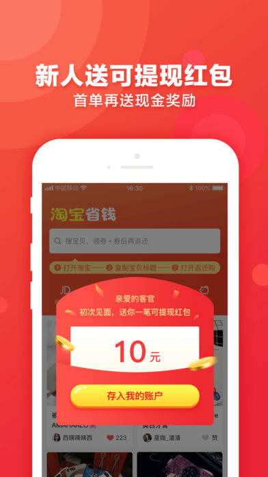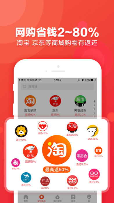 这是一款实用的购物应用。专注于购物返利10年,2000万购物达人首选省钱助手。 返还用户可享:返还翻倍+券后再返+极速到账+返还金额全显示。觉得不错的用户快来下载实用吧。