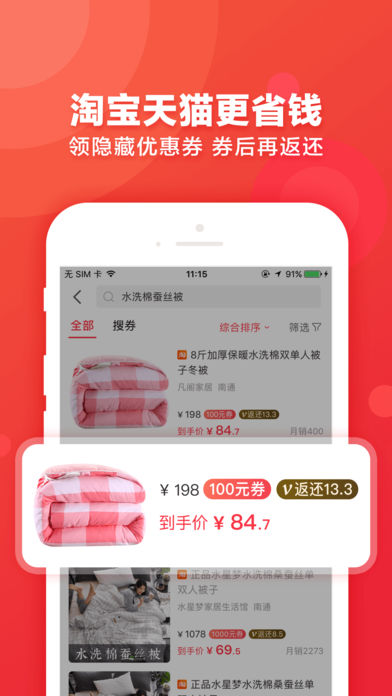 2.领淘宝优惠券下单,也有返还,网购更省钱