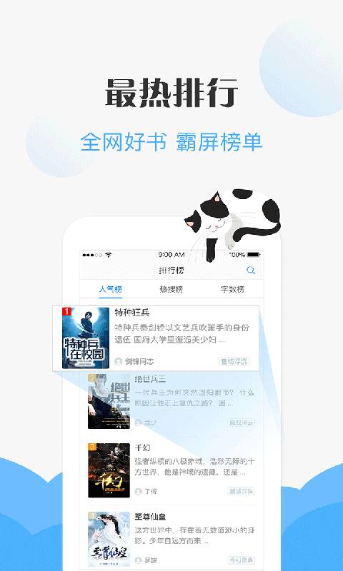 3、最热排行榜单时下最热轻松读不再有书荒;