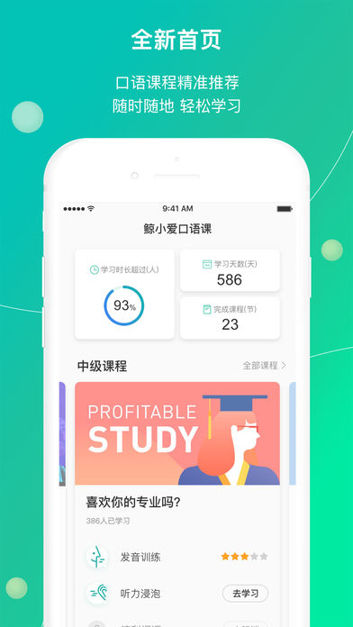 鲸小爱英语app是一款好用的英语学习应用,采用人工智能技术。有效的进行引导学习,帮助提高英语的口语能力。结合系统的课程,帮助你自然的开口,讲出流利英语哦,欢迎下载使用吧。