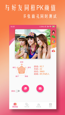 这是一款好玩的颜值测算应用。可以识别出相片中人物的年龄和颜值,与好友同框进行颜值的趣味pk。也可以将心仪的照片展示到“颜值墙”上,让更多朋友看到您的颜值。感兴趣的朋友就快来下载使用吧。