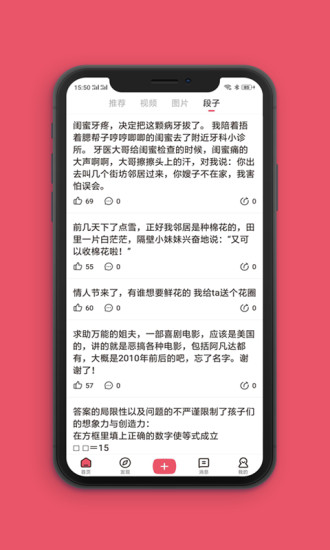 全民爱搞笑app是一款充满趣味的搞笑段子应用,旨在为您带来欢乐,放松你紧绷的生活。有着海量的趣味搞笑内容,每日更新,欢乐不停歇哦。喜欢的小伙伴就快来下载使用吧。