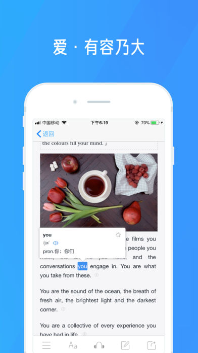 2、支持查看阅读详情音频查词笔记等;