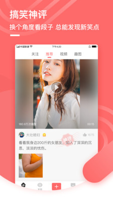 神段子app是一款好用的趣味娱乐消遣应用。海量的高效段子视频神评论,只为给你带去更多的欢乐哦。为你平淡的生活增添点润滑剂哦,是陪您度过悠闲时光的好选择,快来下载使用吧。