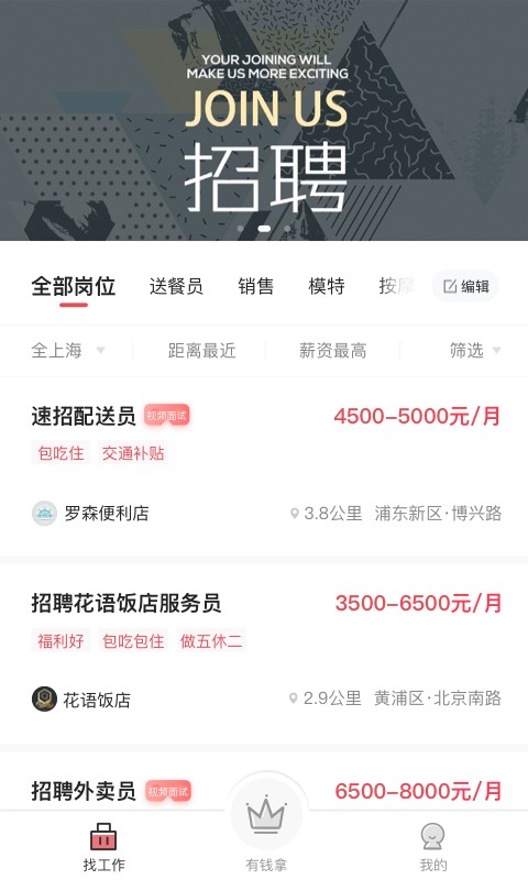 1、丰富职位类型满足不同用户的求职需求;