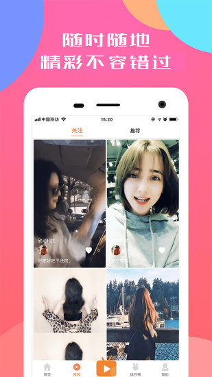 这是一款可发布动态(图片/视频)的APP,还能与关注的人互动聊天。共有五个模块:首页是动态列表;关注是我的好友的动态列表;同城的您附近的好友的动态列表; 您还可以发布动态(图片与视频);和各种朋友点赞评论互动;我的页面提供个性化设置,比如修改主页背景图,设置消息等的开关。