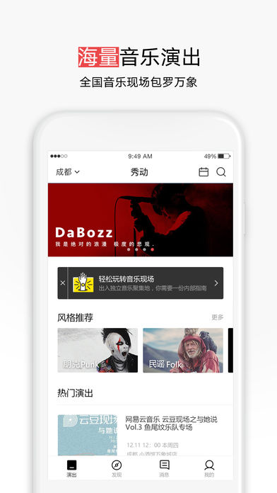 秀动app是一款专业好用的演出信息查询与购票应用。为广大喜爱观看音乐演出的朋友们,网罗了全国的各音乐演出,快捷查询进行购票,另有众多的周边商城好物可以购买,感兴趣的就来下载使用吧。
