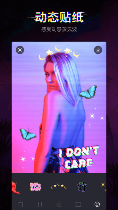 这是一款好用的相机应用,超现实图片编辑器,打造酷炫的蒸汽浪潮。全系列复古、蒸汽元素的滤镜贴纸,浓厚的黑暗潮流气息。VaporCam,坐上挂满霓虹灯的时光机,带你穿梭到八、九十年代。感兴趣的就快来下载使用吧。