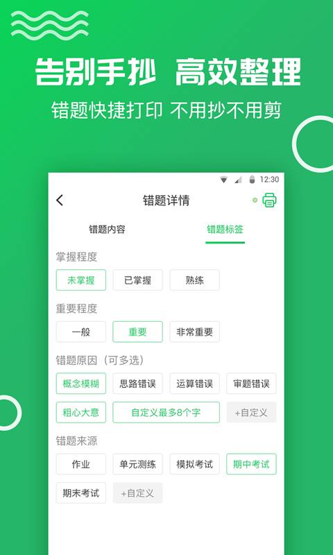 伴印错题app是一款便捷好用的错题管理应用。是您高效学习的必备,通过手机拍照快速的蓝牙连接,即可轻松实现错题的一键打印,从此告别手抄哦。高效的进行错题的回顾整理,获得轻松学习体验。