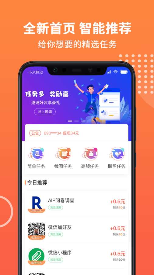 这是一款实用的线上兼职应用。学生赚钱,宝妈赚钱都在用四季赚,是一款手机赚钱的必备软件;轻松赚钱,每天赚钱,时时刻刻都能用手机做任务赚钱,还可以邀请好友一起赚钱哦。
