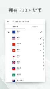 这是一款好用的汇率换算应用。手起键落,即点即用!汇率数据实时更新,支持全球 210 多种货币,无广告完全免费,为全球旅行者提供简洁优雅的汇率计算体验。