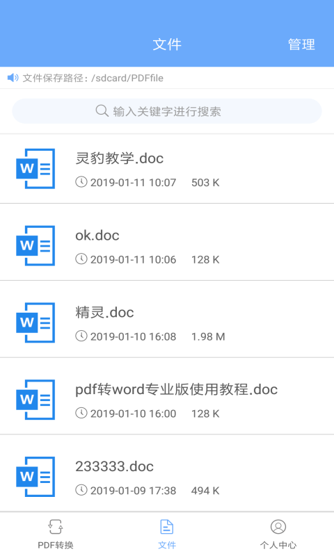 PDF文档转换器app支持转换类型: