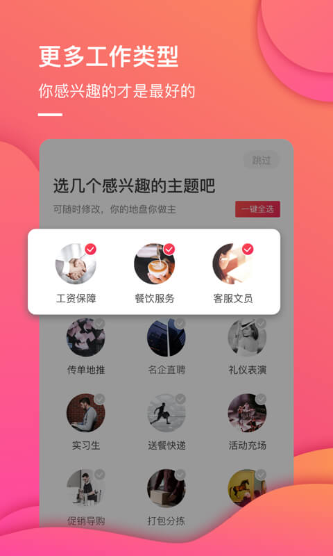 这是一款非常不错的招聘应用。免费的服务行业找工作神器。涵盖全职、兼职、实习生岗位,提供的工作机会覆盖酒店、餐饮、服装、物流、教育、市场、设计、行政、安保、演绎、专业技能和义工等几十个类别。轻松找寻你合适的工作哦。