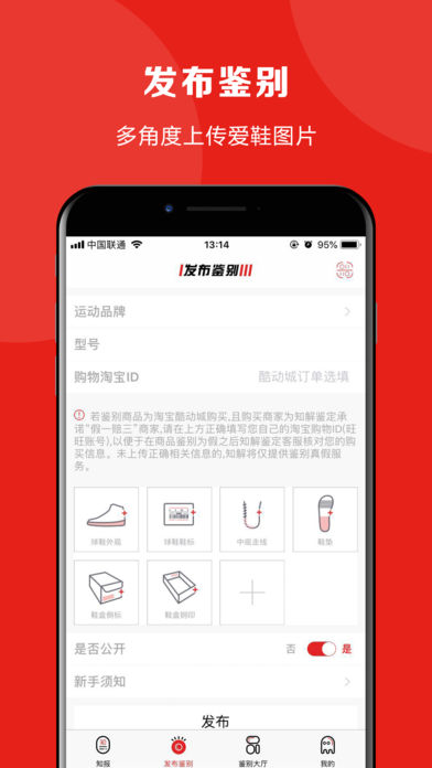 1、多角度的球鞋拍照上传即可鉴定;