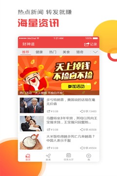 安卓下载 大小:6.51MB 下载:182次 财神道官方免费 新闻阅读 支 持:安卓 分 类:应用软件 大 小:6.51MB 版 本:2.9.5 下载量:182次 发 布:2022-03-08 14:12:40 安卓下载 #财神道官方免费截图 #财神道官方免费简介 财神道官方免费下载,一款专业的新闻资讯阅读软件,汇聚各种精彩的新闻资讯内容,用户可以充分利用自己的碎片时间享受阅读的乐趣,致力于全方位满足用户的阅读需求。财神道官方免费特点: 1、每日头条新闻资讯,让你一手掌握天下精彩事 2、精选网络新热点,这里有国际新闻看点,也有乡村猎奇趣事 3、专注热门头条、健康养生、内涵段子、世界军事等多个栏目 4、聚焦天下奇闻趣事,随手看趣闻,给你阅读新体验财神道官方免费更新内容: 【完善】修复问题,提高稳定性!