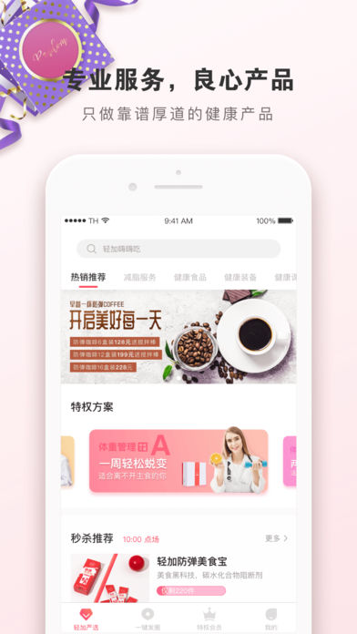这是一款好用的健康社交电商应用。是中国首批大健康领域社交电商平台。当前时下热门轻加App旗下全资子项目。轻加严选只做靠谱厚道的健康管理产品!提供“良心产品+专业服务”,满足亿万家庭的健康管理需求。