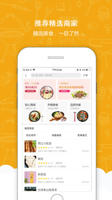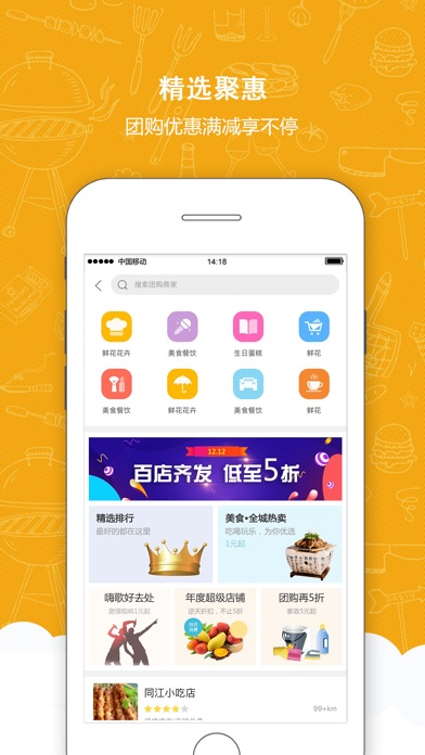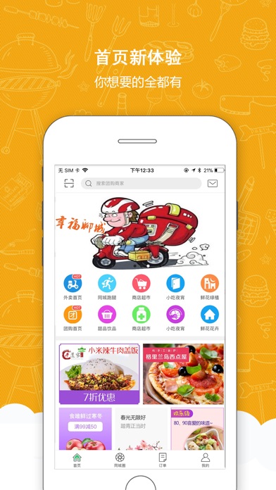 1、汇聚本地美食提供便捷外卖服务;