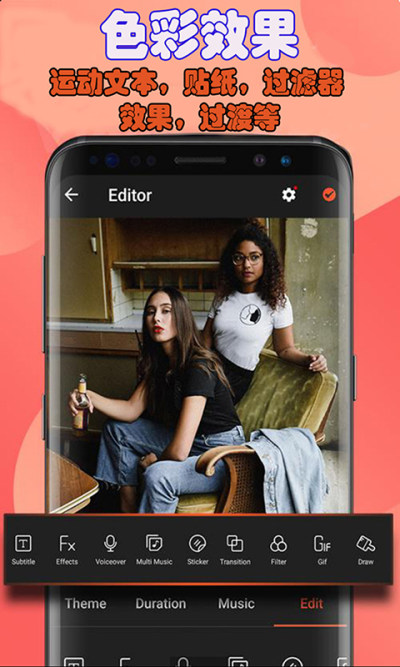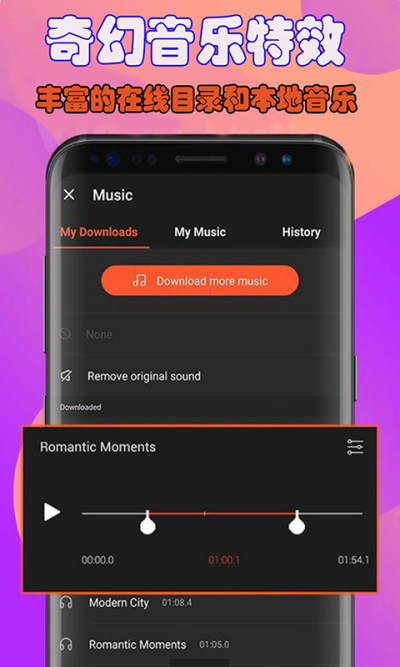 2、多样的素材内容如音乐特效滤镜效果等;