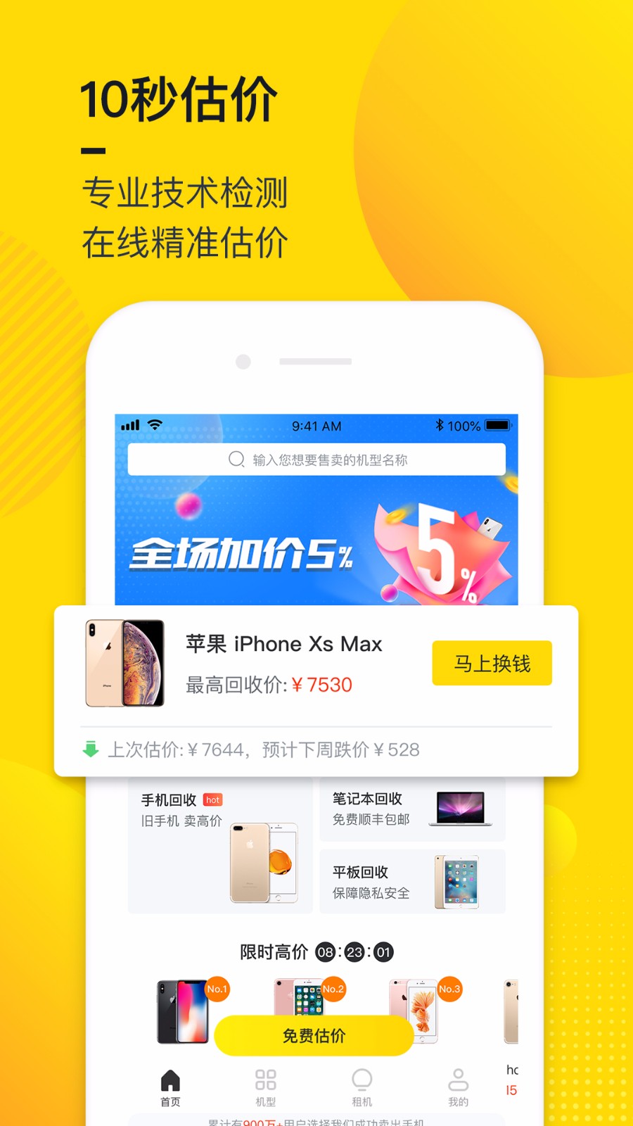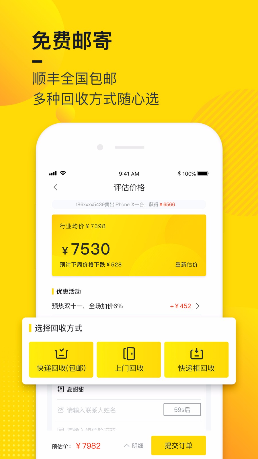 这是一款国内领先的二手手机回收平台,为用户提供一键检测、智能估价、快速放款、安全可靠的专业回收服务。用户只需估价后,选择邮寄回收、上门回收、地铁回收三种方式之一,回收宝提供顺丰包邮的服务,同时承诺在收到手机24小时内支付货款,有需要的欢迎下载使用吧。