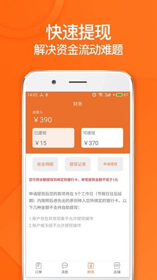 4、搞笑便捷随时随地处理订单快速提现;