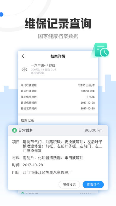1、支持查看权威的官方汽车维修的电子健康档案系统;