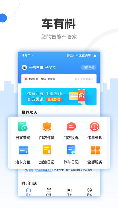 车有料app是一款专为车主朋友们打造的用车服务应用。支持记录与查询你的汽车保养维修记录,油卡的充值,违章的查询等服务,轻松体验便捷的用车生活哦,有需要的可以来下载使用。