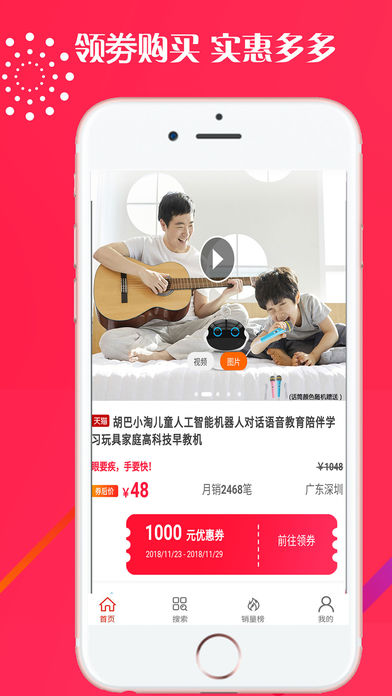 这是一款不错的手机购物应用。所领取的优惠券通常面额较大,买同样的商品节省很多。每天更新,您想要的都有!支持淘口令,支持唤醒手机淘宝APP领券。觉得不错的欢迎下载使用。