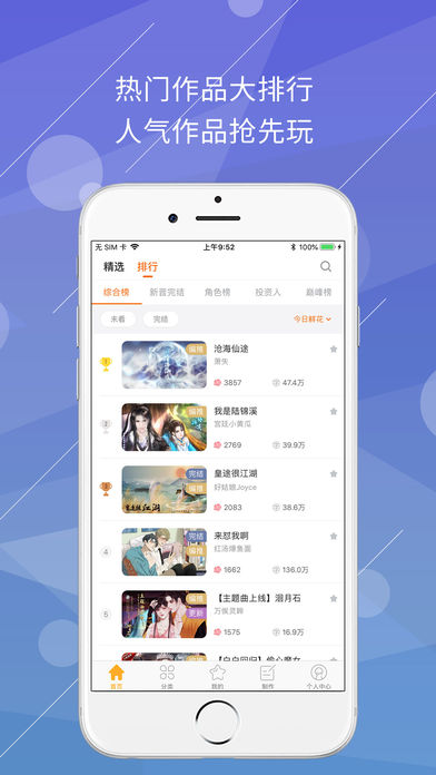 4、热门作品人气排行榜单众多的优质作品抢先阅读。