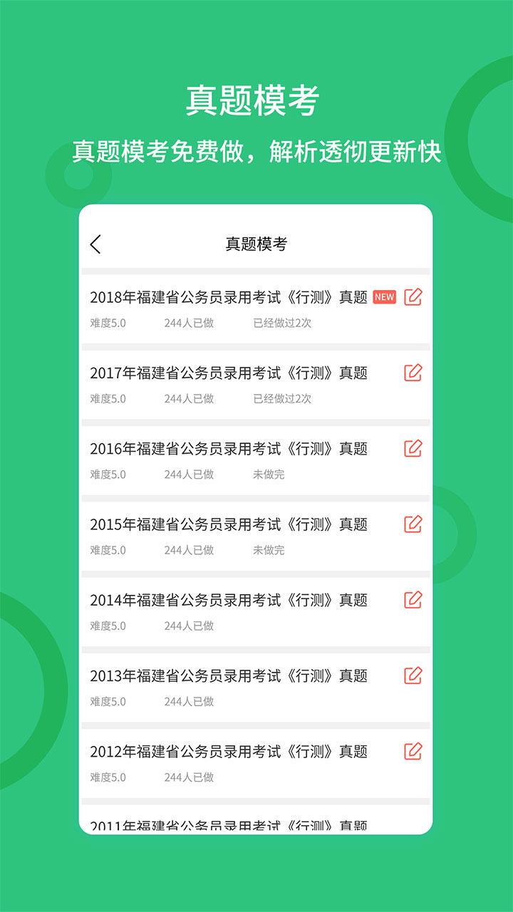 安卓下载 大小:11.45MB 下载:152次 公务员题库 学习教育 支 持:安卓 分 类:应用软件 大 小:11.45MB 版 本:1.0.6 下载量:152次 发 布:2022-07-19 10:07:12 安卓下载 #公务员题库截图 #公务员题库简介 公务员题库app是一款非常不错的公务员考试备考应用,收录了全面的题库资源内容,用户可按照章节进行练习,提供详尽的答案解析,使您能够更好的学习理解哦,快来下载使用吧。公务员题库app特点:1、收录近五年的真题题库资源;2、提供全面的详尽答案解析;3、视频公开课对课程内容全面精讲;4、大数据的答题分析提供能力评估报告。公务员题库app介绍:这是一款公务员考试题库应用,收录近5年来公务员考试历年真题、模拟题题库、每日一练、考点章节练习、高频考点、准题库内含有上千万题库解析。有需要的欢迎下载使用吧。