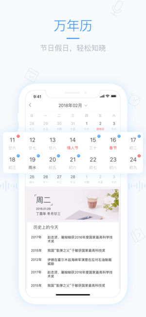 4、万年历:适合中国人的万年历功能,节日,放假信息一手掌控,提前做好约会、旅游安排。