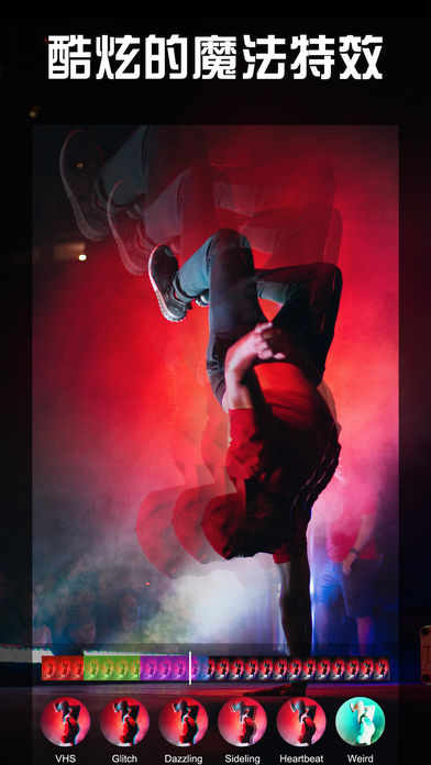 这是一款不错的特效相机应用。轻松的即可为视频混合上各种特效,动态贴纸以及文字动画等内容,再配上各种动感的音乐音效,打造与众不同的视频效果哦。