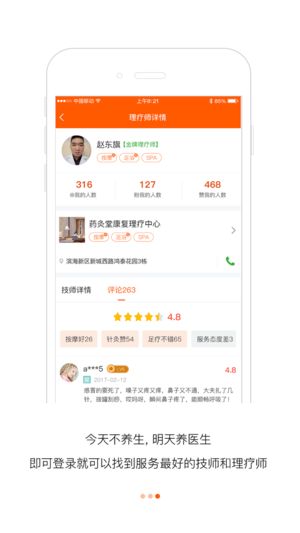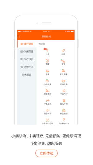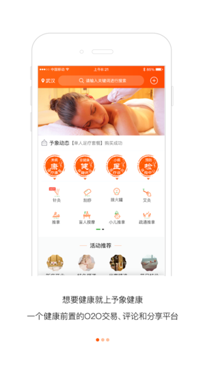 4、提供健康套餐购买,技师和理疗师预约以及上门服务